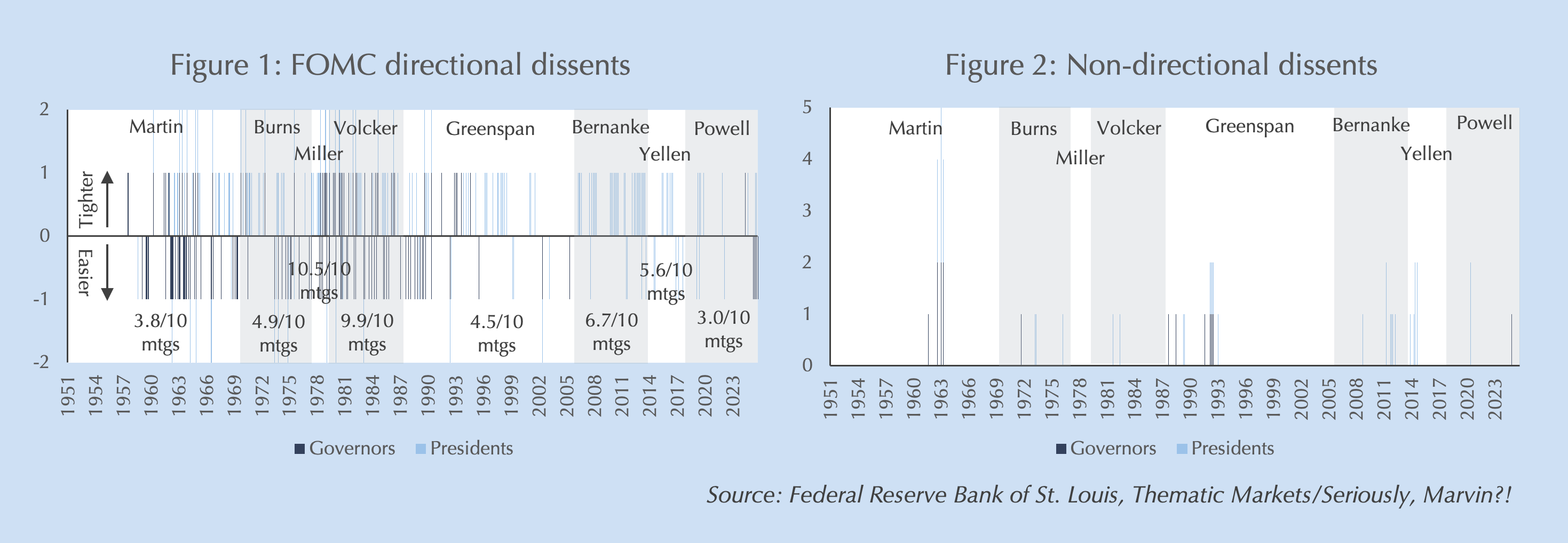 And therein lies the big question: both sides in this fight claim to want more dissent in discussions of monetary policy. Outgoing Chairman Powell celebrated December’s dissents as part of the best discussions “we’ve had in my 14 years at the Fed,”9 while incoming nominee for chairman, Kevin Warsh, critiques the current Fed for its “groupthink” and wants more “robust debate”10 and Treasury Secretary Scott Bessent criticized regional Fed presidents imported from New York as undermining the diversity of views the District Bank structure of the Fed was intended to generate.11